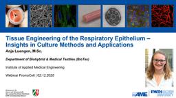 Watch this webinar presented by Anja Luengen, Department of Biohybrid and Medical Textiles at the Institute of Applied Medical Engineering, to discover the latest insights in culture methods and applications for tissue engineering of the respiratory epithelium.