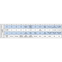 Eotaxin-1 (CCL11), Eotaxin-2 (MPIF-2/CCL24), GCSF, GM-CSF, ICAM-1 (CD54), IFN-gamma, I-309 (TCA-3/CCL1), IL-1 alpha (IL-1 F1), IL-1 beta (IL-1 F2), IL-2, IL-3, IL-4, IL-6, IL-6 R, IL-7, IL-8 (CXCL8), IL-10, IL-11, IL-12 p40, IL-12 p70, IL-13, IL-15, IL-16, IL-17A, IP-10 (CXCL10), MCP-1 (CCL2), MCP-2 (CCL8), M-CSF, MIG (CXCL9), MIP-1 alpha (CCL3), MIP-1 beta (CCL4), MIP-1 delta (CCL15), RANTES (CCL5), TGF beta 1, TNF alpha, TNF beta (TNFSF1B), TNF RI (TNFRSF1A), TNF RII (TNFRSF1B), PDGF-BB, TIMP-2