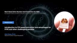 Researchers and clinicians continue to be challenged by FFPE tissue samples with a low abundance of high-quality nucleic acid. FFPE samples frequently fail to produce DNA or RNA with sufficient yield or quality for downstream analyses when conventional extraction methods are used. Despite efforts to optimize these labor-intensive extraction methods, extracts from FFPE samples frequently fail to qualify for next-generation sequencing or fail to yield actionable results when sequenced. In this webinar, we will review data from samples purified on the Ionic® Purification System that demonstrates the ability of the system to recover DNA, RNA, or miRNA from challenging FFPE tissue samples with sufficient yield and quality for downstream molecular analyses.
