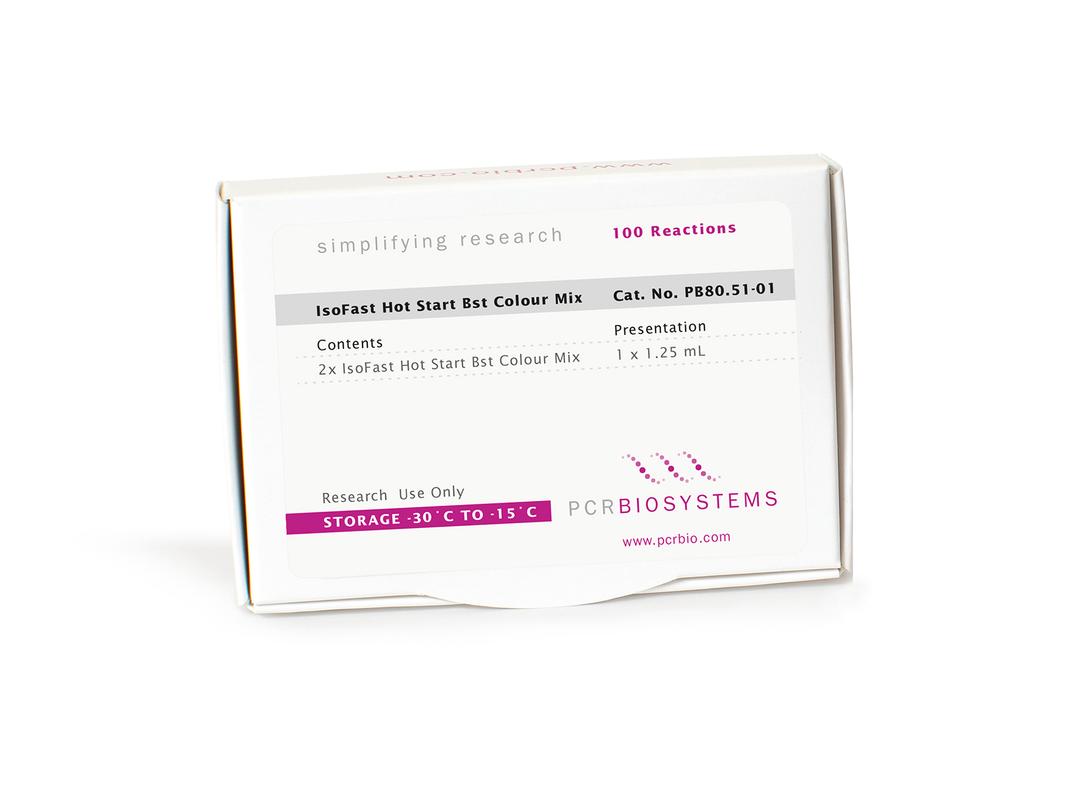 IsoFast® Hot Start Bst Colour Mix is an isothermal amplification system that enables PCR-free, direct, colour-based readout of DNA targets that is ideal for point-of-care diagnostics and field testing. This 2x mix includes IsoFast® Hot Start Bst Polymerase which is a recombinant version of the large fragment of Geobacillus stearothermophilus (formerly known as Bacillus stearothermophilus, Bst) DNA Polymerase. This colourimetric formulation is a preassembled mix allowing direct sample and primer input.