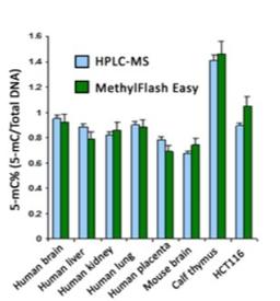 The MethylFlash™ Global DNA Methylation (5-mC) ELISA Easy Kit is a complete set of optimized buffers and reagents to colorimetrically quantify global DNA methylation status by specifically measuring levels of 5-methylcytosine (5-mC) in a simplified, "one-step" ELISA-like reaction. This allows global DNA methylation to be directly measured more quickly than other techniques such as LUMA, LINE-1, Alu or LTR-based assays.