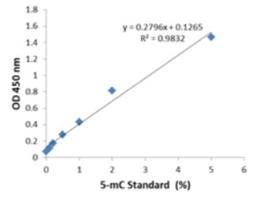 - Specific - High specificity to 5-mC, with no cross-reactivity to unmethylated cytosine and no cross-reactivity to hydroxymethylcytosine within the indicated concentration range of the sample DNA