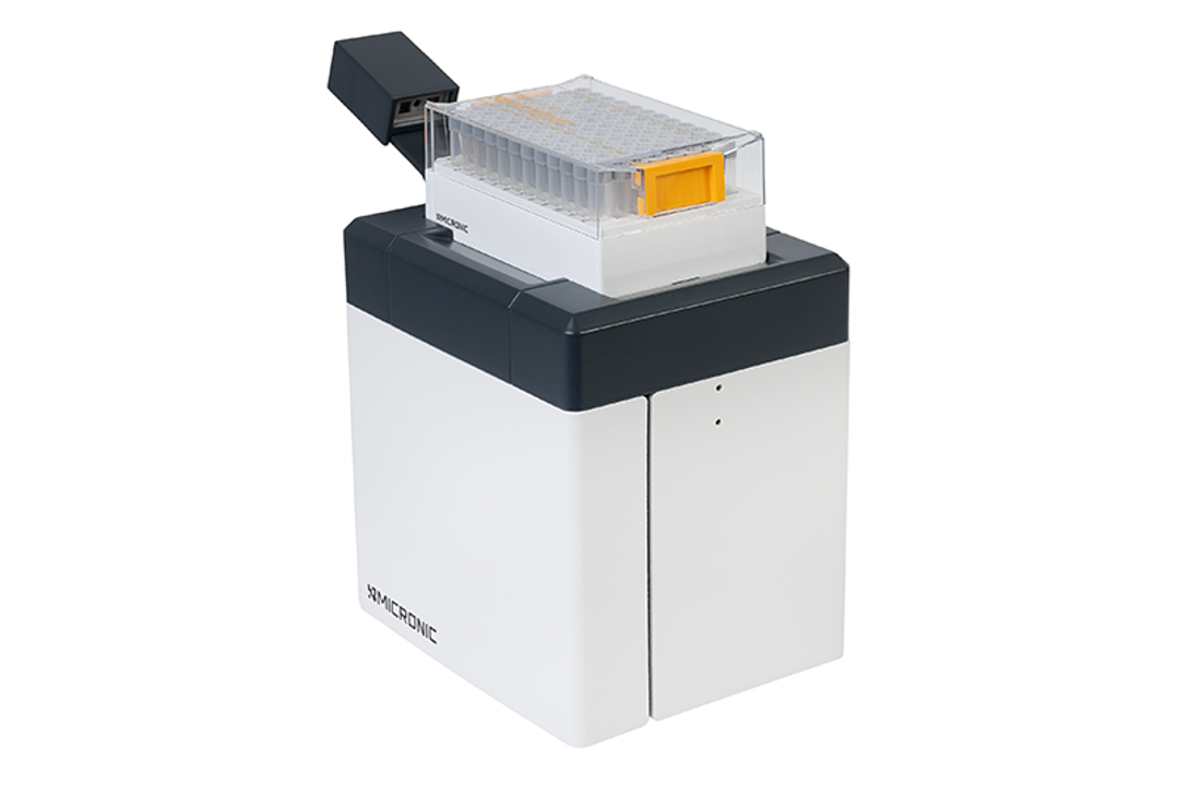 The Micronic Rack Reader DR900 is a modern camera-based rack reader capable of reading 138, 96, 48 or 24 well racks, with the option of scanning 1D side barcodes. The Micronic Code Reader Software has been developed with extensive user feedback, and features many functions designed to give you a perfect overview of your sample collection. Not only is the device quick, scanning a rack in less than 3 seconds, it also has a small form factor.
