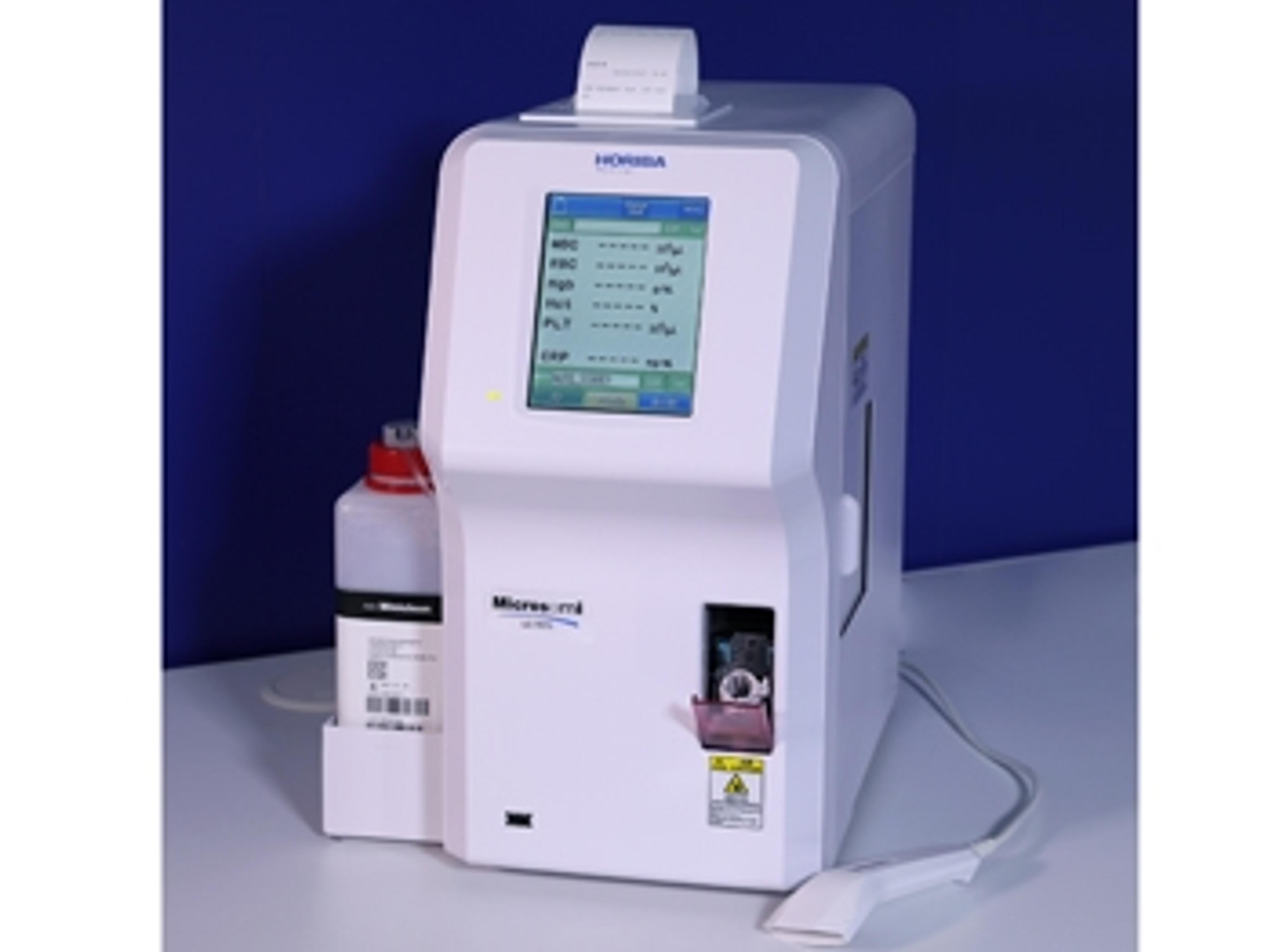 Overview Highly compact and lightweight Micro-sampling on whole blood: CBC: 10μL / CBC+CRP: 18μL Precise cellular identification through electronic impedance variation method Haemoglobin measurement with photometry CRP measurement with immunoturbidimetry technology Features CRP Ready and easy to use CRP reagent No need to take the CRP reagent out after use Integrated thermal printer (full data printout, including PLT, RBC an…