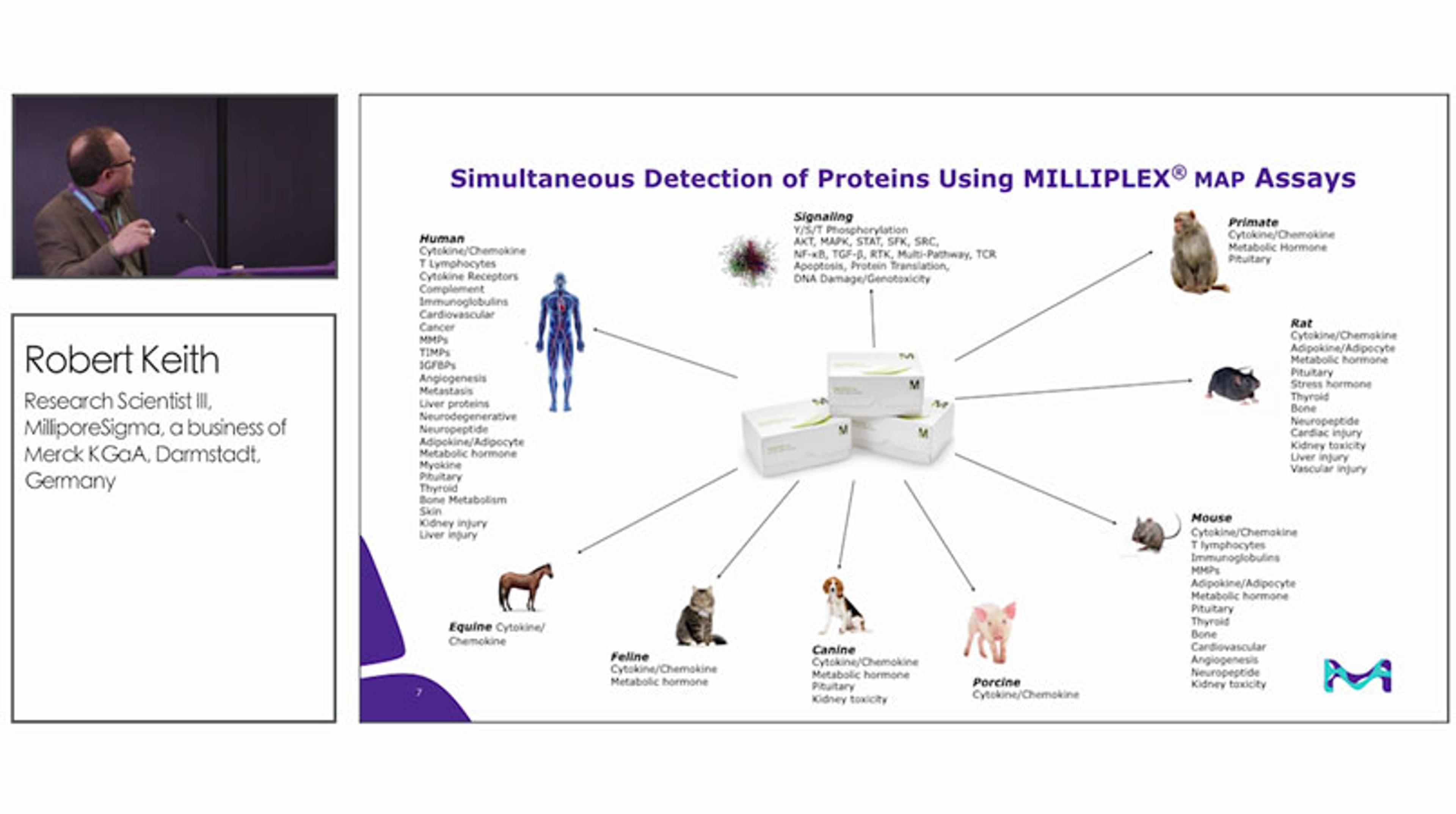 In this presentation, Robert Keith, R&D Scientist, MilliporeSigma, a business of Merck KGaA, Darmstadt, Germany, introduces three high-sensitivity MILLIPLEX® MAP panels to help researchers detect low levels of multiple cytokines in small amounts of sample: the Human High Sensitivity T Cell Magnetic Bead Panel (in both 96-well format and a new 384-well format) and the new Mouse High Sensitivity T Cell Magnetic Bead Panel in 96-well format. Both the human and mouse high-sensitivity panels can detect picogram levels of cytokines in just 25 µL of sample for up to 21 or 18 critical cytokines, respectively.