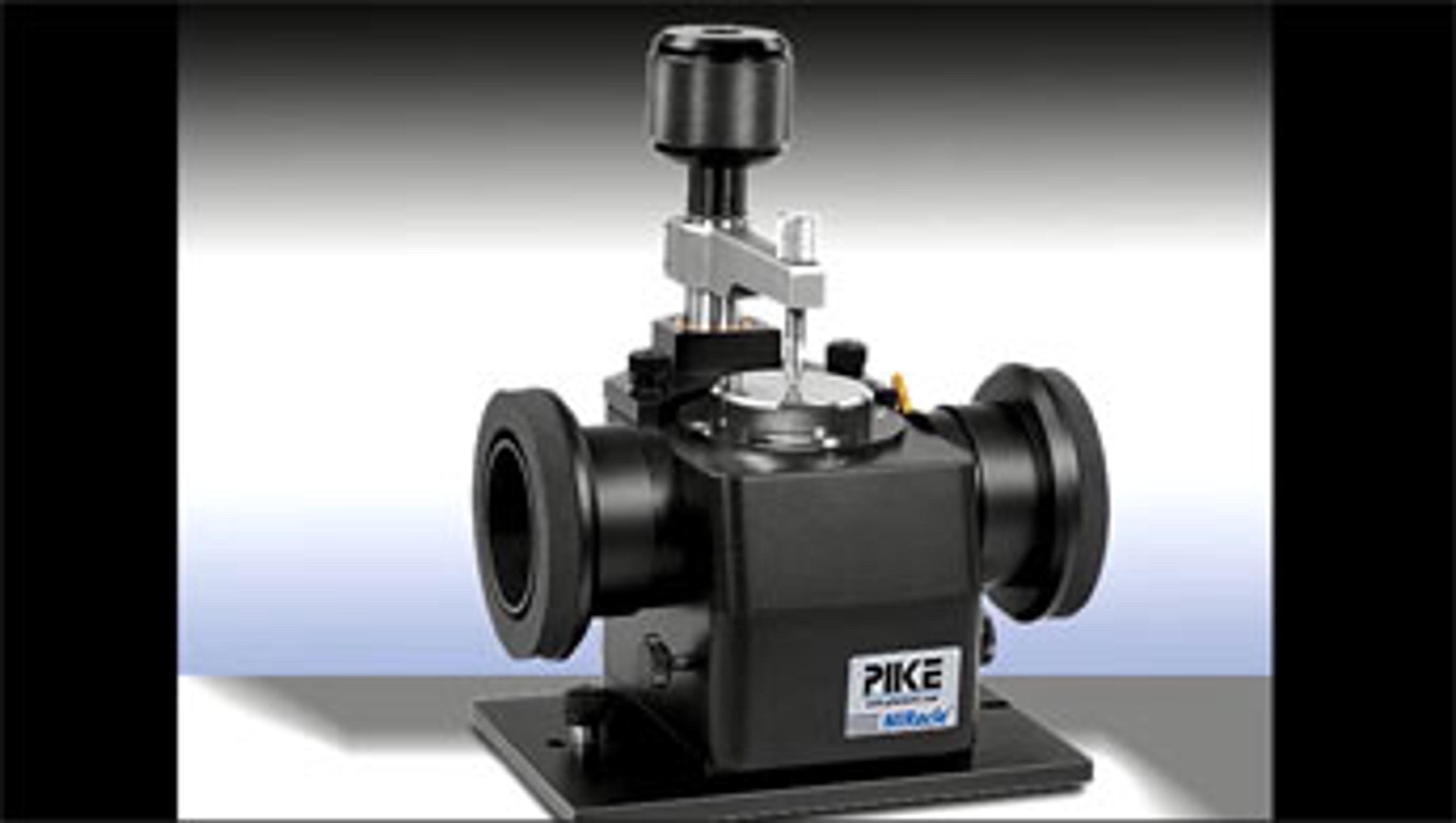 The PIKE MIRacle™ is a universal ATR sampling accessory for analysis of solids, liquids, pastes, gels, and intractable materials. In its most popular configuration, it is a single reflection ATR accessory with high IR throughput which makes it ideal for sample identification and QA/QC applications. Easily changeable crystal plate design enables analysis of a broad spectrum of sample types while ensuring constant sampling pathlength. ATR crystals available are diamond/ZnSe, diamond/KRS-5, ZnSe, Ge, and Si. Advanced options include three reflection ATR crystal plates to optimize for lower concentration components and heating.