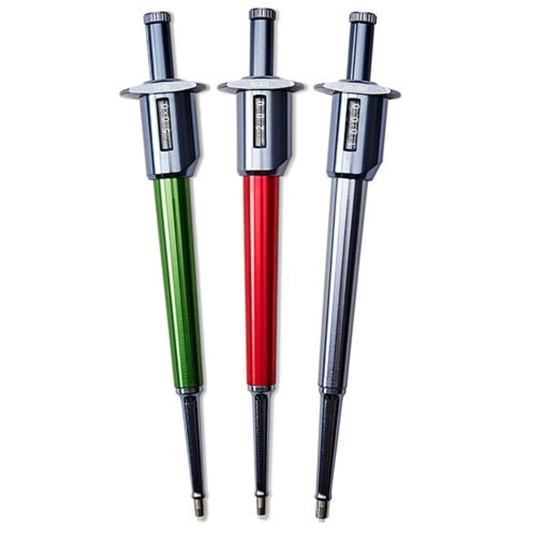 MLA pipettors are made of precision-engineered aluminum alloy and stainless steel, and are designed for highly accurate delivery and proven performance. Available in a wide range of fixed volumes as well as adjustable volume models. Pipettors feature color-coded bodies for easy volume identification.