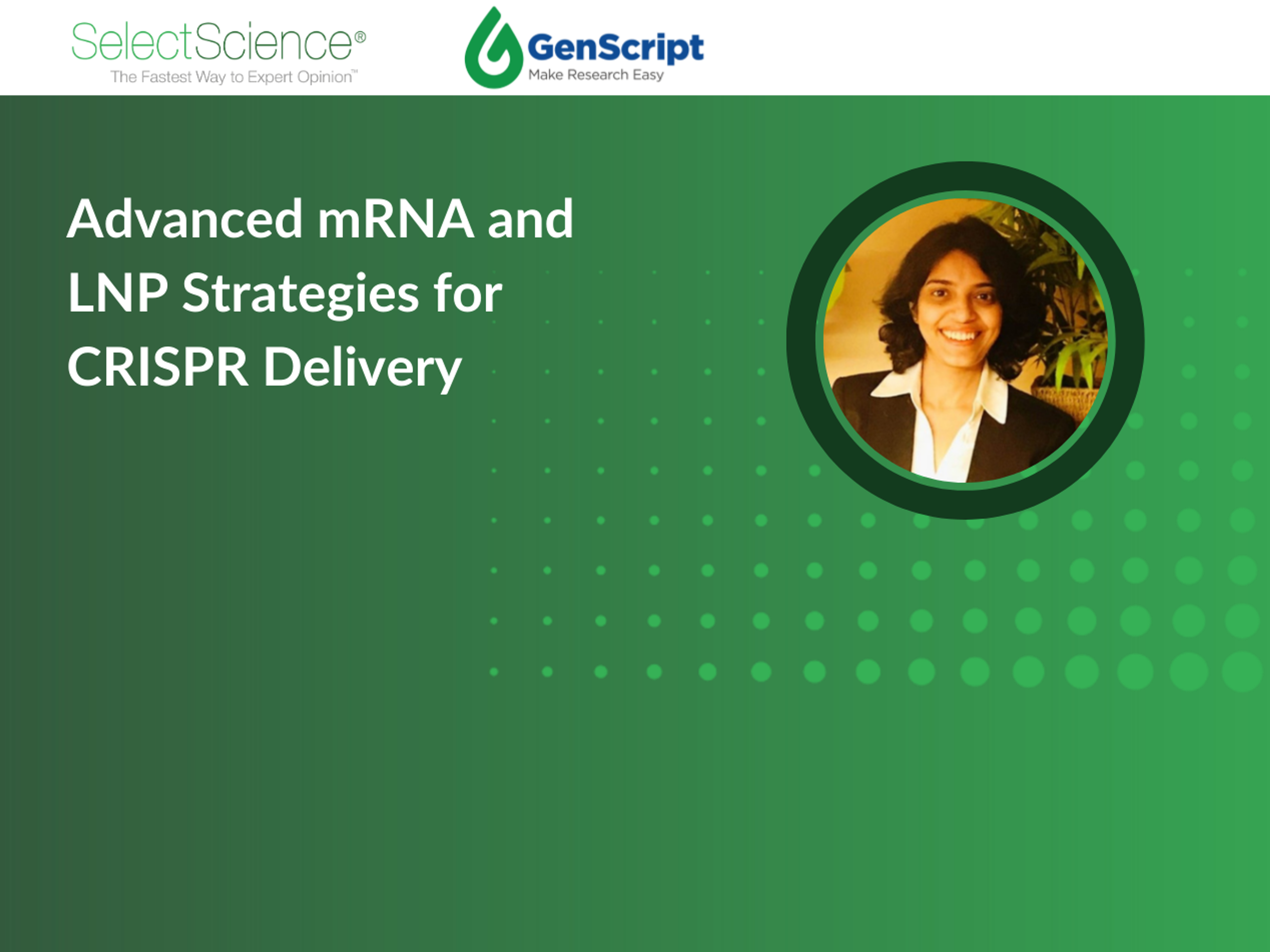 Interested in this webinar? Explore the other webinars in this series on Advanced mRNA and LNP Strategies for CRISPR Delivery and Self-Amplifying RNA in Vaccines and Beyond