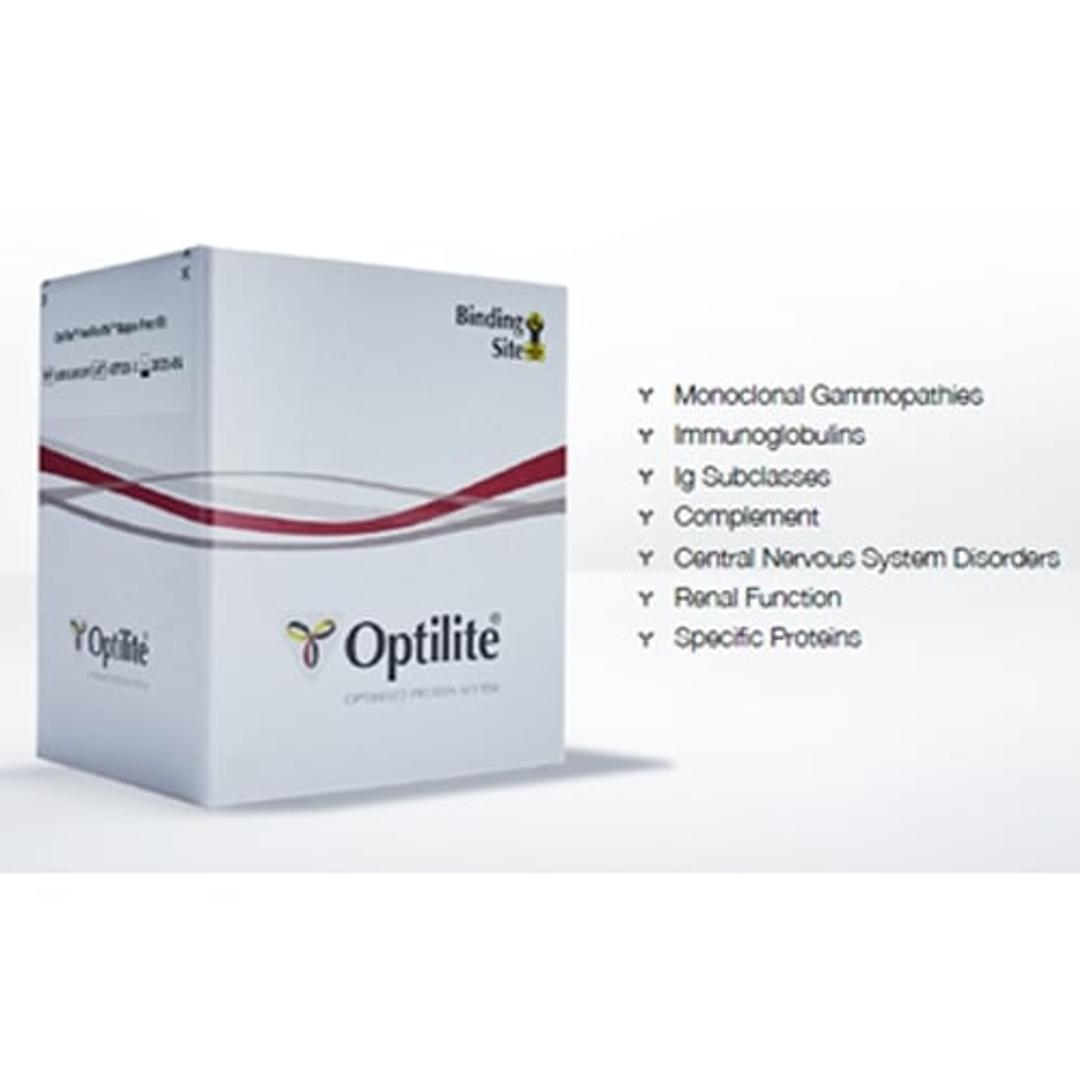 The Optilite® analyzer is a protein analysis system designed to streamline special protein testing workflows in clinical laboratories. It has a unique menu with over 50 assays and three methods for antigen excess detection. Binding Site gives further details about the assay menu, including its range of assays, calibrators, controls and accessories.