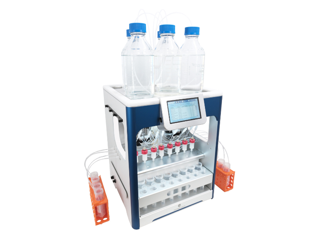 OttoPure - Automated Protein Purification is engineered to process up to 8 samples simultaneously, accommodating volumes up to 1L and offering the versatility of 9 buffer solutions.