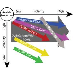 - Color coded to indicate SPME Fiber coating and different film thicknesses