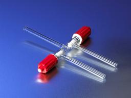 These high performance Rotaflo® three-way stopcocks can be adjusted from a 0 to 6mm bore opening and have 10mm O. D. sidearms. They are designed so that only chemically resistant polytetrafluoroethylene (PTFE) and PYREX® borosilicate glass are in contact with liquids and gases. The Rotaflo® stopcock design permits fine flow adjustment. Lubrication is not required and assembly is fast because there are no O-rings, washers or nuts. The seal is visible when open or closed.
