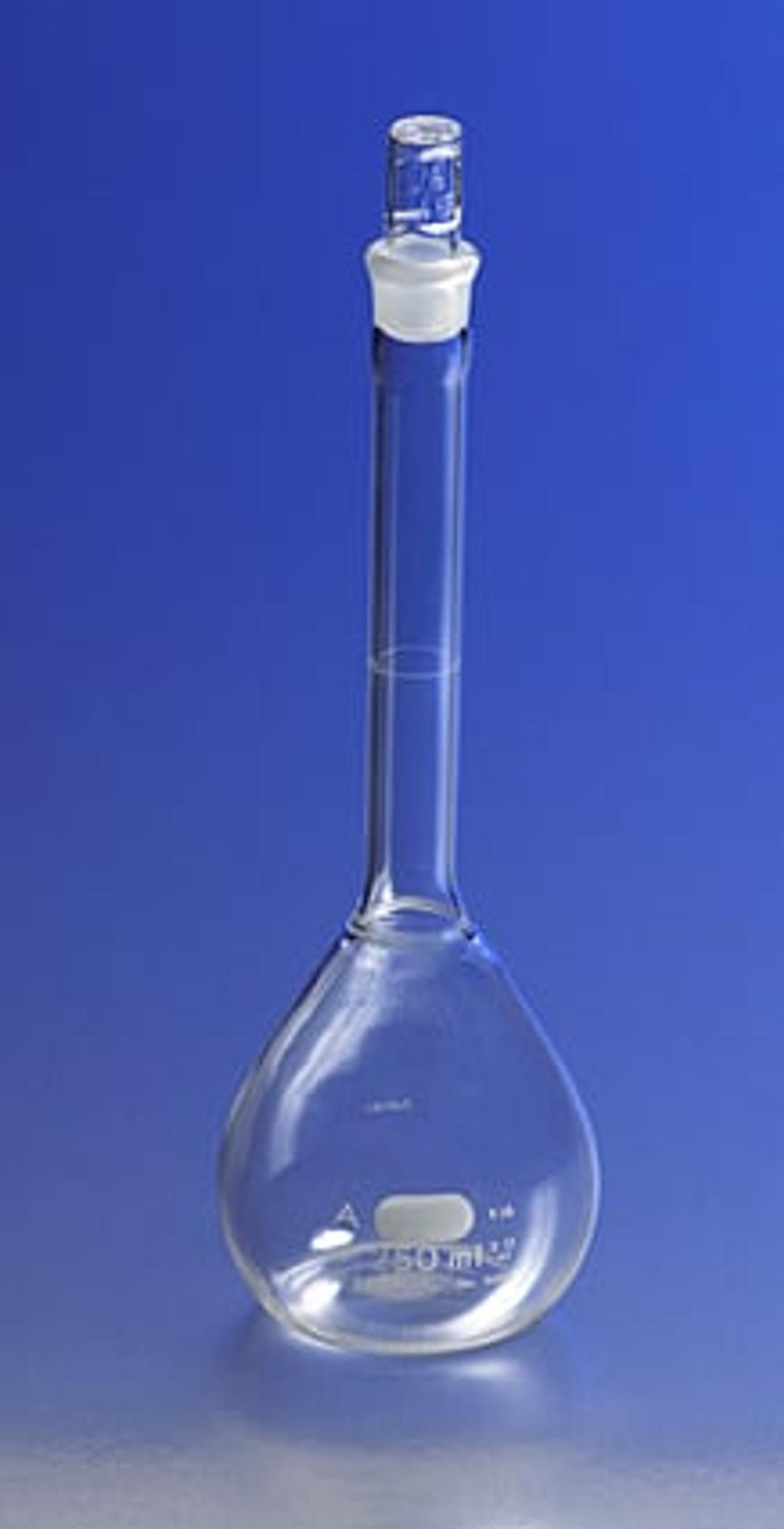 These 10 mL PYREX® volumetric flasks are calibrated to Class A tolerances in accordance with ASTM E-542 and E-288. Each flask is individually serialized and supplied with a Certificate of Identification and Capacity, traceable to NIST standards. Supplied with No. 9 Standard Taper glass stoppers. For replacement stoppers see No. 7650. The graduation line is sharp and permanent and large white block letters make the inscription…