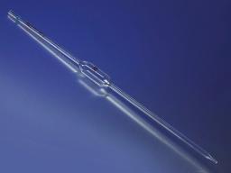 These 10 mL PYREX® volumetric pipets were designed primarily for schools and laboratories where the Class A tolerance of No. 7100 is not required. They are constructed to the same wall thickness and length as our No. 7100, but have larger tip openings for faster delivery. It is primarily due to this faster delivery that accuracy tolerances are twice those specified for Class A volumetric ware. Reference: ASTM E-969.