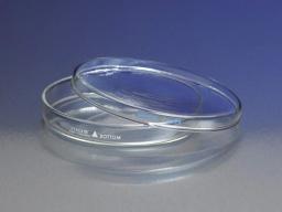 These flat, clear PYREX® dish bottoms will withstand repeated sterilization (wet or dry). Approximate dish bottom diameter and height is 95x17mm. The edges are beaded to provide greater mechanical strength. The bead also provides a means to equally space the side walls of the bottom and cover, thereby reducing the capillary action of the condensed moisture on the sides. They are not affected chemically or thermally by any of the methods commonly employed in laboratories where sterilization is routinely used. The bottoms are marked in white enamel to make sorting easier. Bottoms also have a triangular enamel reference point for serial dilutions.
