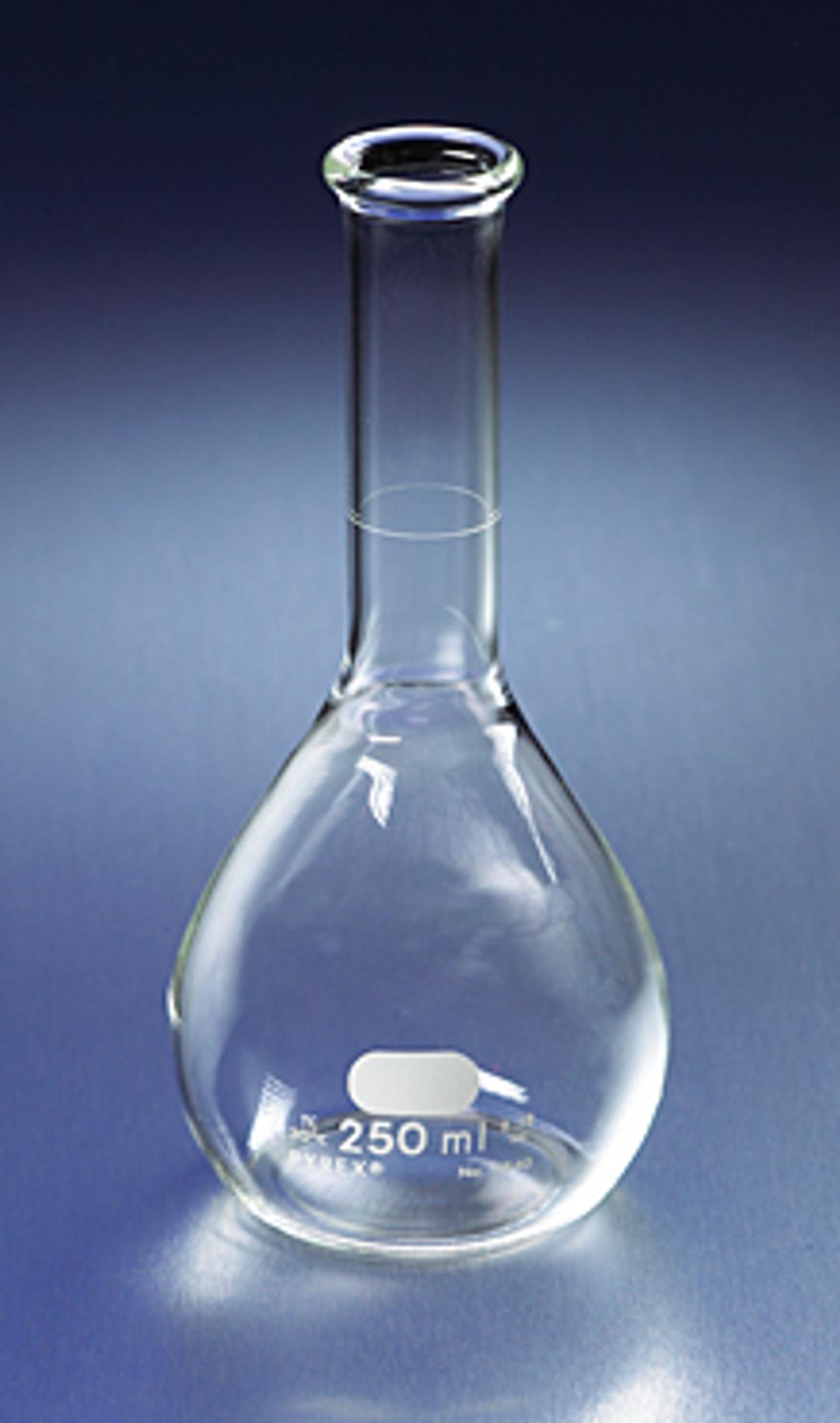 PYREX® 250 mL Phosphoric Acid Volumetric Flasks, Wide Neck, Tooled Rim