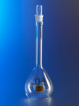 These PYREX® 2L volumetric flasks provide improved lab convenience, broad selection and precise volume measurement. The strength of these flasks has been increased appreciably through machine-blown bodies to which are sealed heavy-tubing necks tooled for No. 27 Standard Taper glass stoppers. The graduation line is sharp and permanent and large white block letters make the inscription easy to read. These Class A volumetric flasks have been manufactured to Class A tolerances as established by ASTM E- 694 for volumetric ware, ASTM E-542 for calibration of volumetric ware and ASTM E-288 for volumetric flasks.