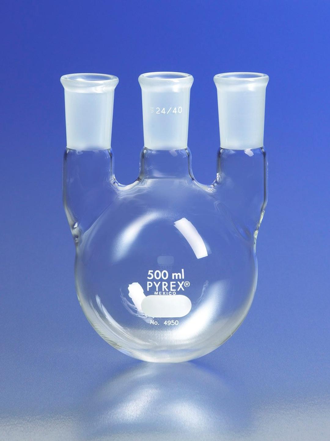 PYREX® 2L Three Neck Distilling Flask with Vertical Neck 24/40 Standard Taper Joints