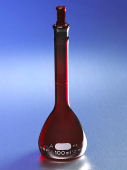 PYREX® 50 mL EZ Access™ Low Actinic Wide Mouth Volumetric Flask, Class A, Heavy Duty, with Glass Standard Taper Stopper