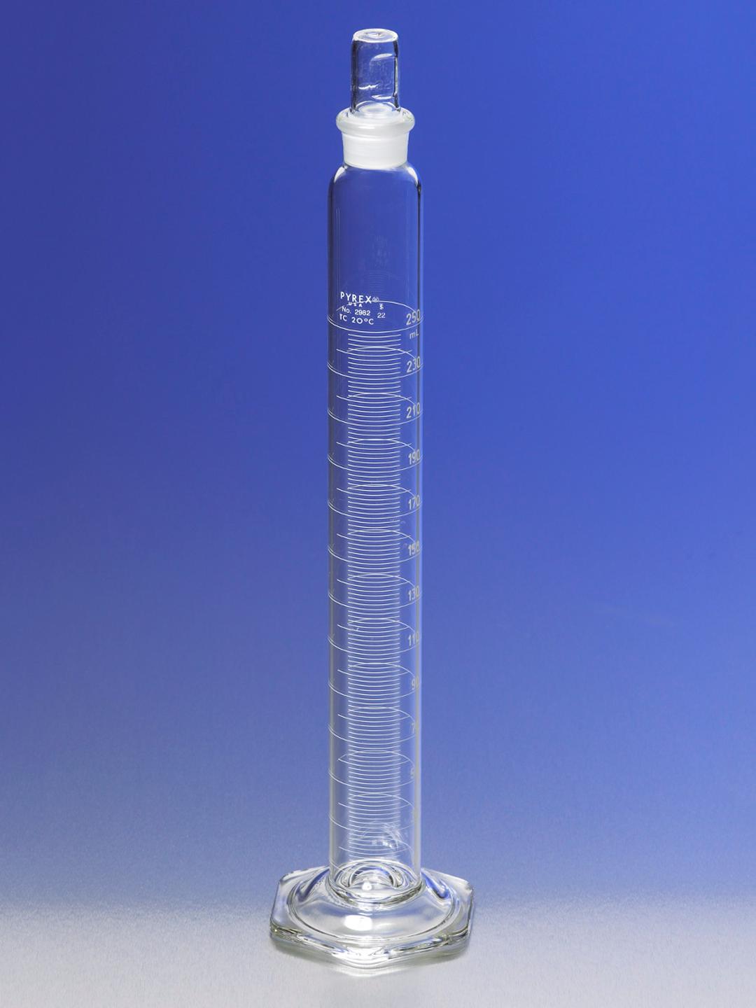 PYREX® 50 mL Single Metric Scale Cylinder, Standard Taper Stopper, White Graduations, TC