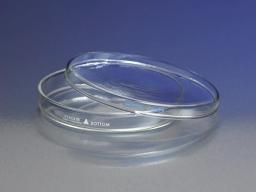 These flat, clear PYREX® dish bottoms will withstand repeated sterilization (wet or dry). Approximate dish bottom diameter and height is 55x17mm. The edges are beaded to provide greater mechanical strength. The bead also provides a means to equally space the side walls of the bottom and cover, thereby reducing the capillary action of the condensed moisture on the sides. They are not affected chemically or thermally by any of the methods commonly employed in laboratories where sterilization is routinely used. The bottoms are marked in white enamel to make sorting easier. Bottoms also have a triangular enamel reference point for serial dilutions.