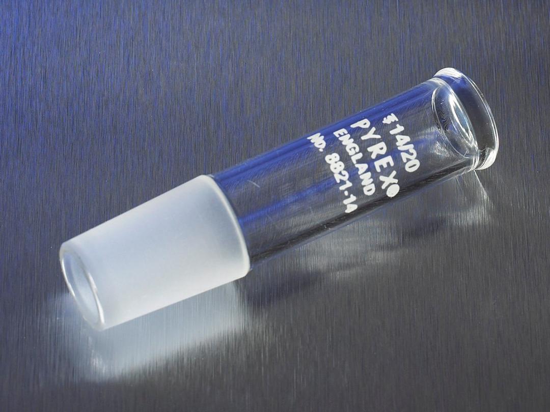 These PYREX® thermometer adapters have a 14/20 Standard Taper ground joint at one end while the other end is tooled to accommodate a thermometer. The adapter comes with a rubber thermometer holder. For replacement rubber thermometer holders, see No. 7715. This tube is also a replacement part for Corning® organic chemistry kit No. 6949K.