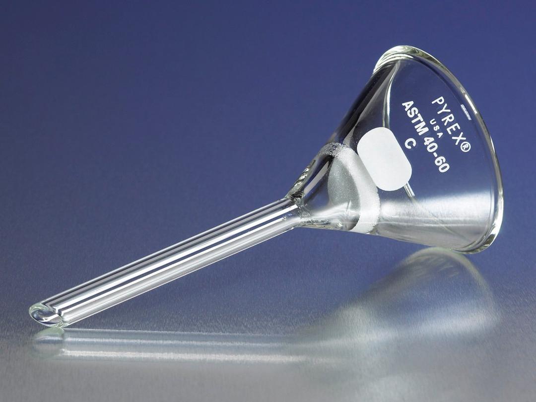 These PYREX® Hirsch funnels have a 20mm diameter medium porosity fritted disc with a porosity range of 10 to 15 µm. These fritted disc funnels are very useful in preparative work, or in making separations where it is necessary to wash the precipitate and redissolve with chemicals which would attack filter paper. The angle of the funnel body facilitates the removal of precipitates. Porosity is controlled in manufacture, and discs are individually tested and graded into these classifications. The porosity for the pore diameter of the filter is determined in the same manner as specified in ASTM E-128 “Maximum Pore Diameter and Permeability of Rigid Porous Filters for Laboratory Use.” For more information on fritted products, please check the Technical Information Listing for the Guide to Selecting and Using Fritted Glassware.