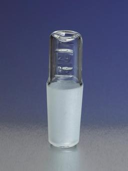 These hollow full length PYREX® 19/38 Standard Taper joint stoppers are closed at the bottom. They are interchangeable with standard taper joints of the same size. These hollow stoppers are light in weight, yet very strong to reduce chipping and breakage, thus minimizing replacement costs. A barrel-shaped head means it is easy to clean and even easier to rotate in or out. Grooves in the sides help prevent slippage. The flat to…