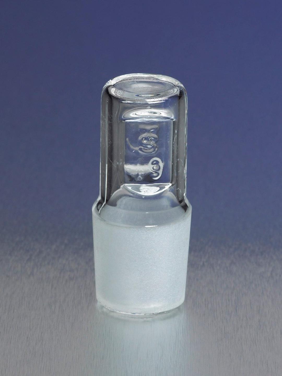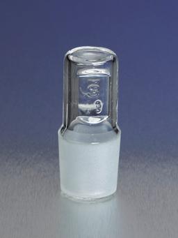 These No. 32 hollow glass PYREX® stoppers are light in weight, yet very strong to reduce chipping and breakage, thus minimizing replacement costs. A barrel-shaped head means it is easy to clean and even easier to rotate in or out. Grooves in the sides help prevent slippage. The flat top allows the stopper to stand on its head, which frees the user's hand and minimizes potential contamination. This PYREX® stopper is interchangeable with other common flask stoppers and fits all standard labware of comparable Standard Taper size.