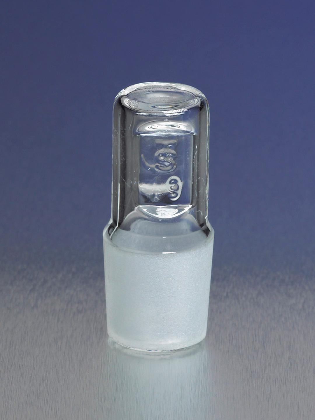 These No. 38 hollow glass PYREX® stoppers are light in weight, yet very strong to reduce chipping and breakage, thus minimizing replacement costs. A barrel-shaped head means it is easy to clean and even easier to rotate in or out. Grooves in the sides help prevent slippage. The flat top allows the stopper to stand on its head, which frees the user's hand and minimizes potential contamination. This PYREX® stopper is interchangeable with other common flask stoppers and fits all standard labware of comparable Standard Taper size.
