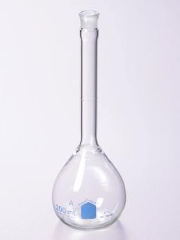 These PYREX® VISTA™ 50 mL volumetric flasks provide improved lab convenience, broad selection and precise volume measurement. These flasks have sealed necks tooled for No. 9 Standard Taper glass stoppers. The graduation line is sharp and permanent and large blue block letters make the inscription easy to read. These Class A volumetric flasks have been manufactured to Class A tolerances as established by ASTM E- 694 for volumetric ware, ASTM E-542 for calibration of volumetric ware and ASTM E-288 for volumetric flasks.
