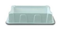 - Trough design, graduation marks on interior walls, and pour-off spouts on each corner