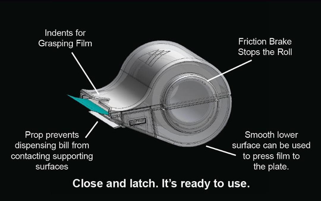 - smooth lower surface for pressing film to the plate