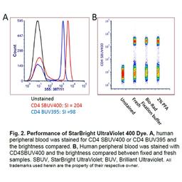 Excitable by the 355 nm laser, StarBright UltraViolet (SBUV) Dyes are a perfect way to expand your flow cytometry panels, giving you more flexibility in your panel design while avoiding spillover and spreading. Available with maximal emissions ranging from 400 to 800 nm, eight additional dyes are coming soon with the same exceptional properties as the other StarBright Dyes and are conjugated to our validated antibodies. Suitab…