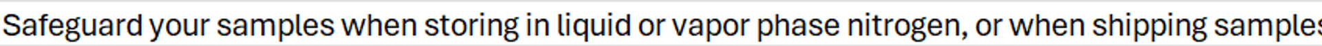 Give your cryogenic storage tubes and vials extra protection, such as when shipping or storing in liquid or vapor phase nitrogen with these storage accessories.
