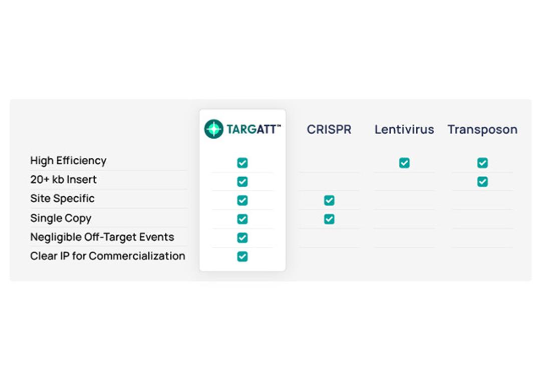 - Insert genes with confidence—with TARGATT™ technology you can achieve site-specific, single-copy insertion of 20+ kb at the reliable H11 safe-harbor locus
