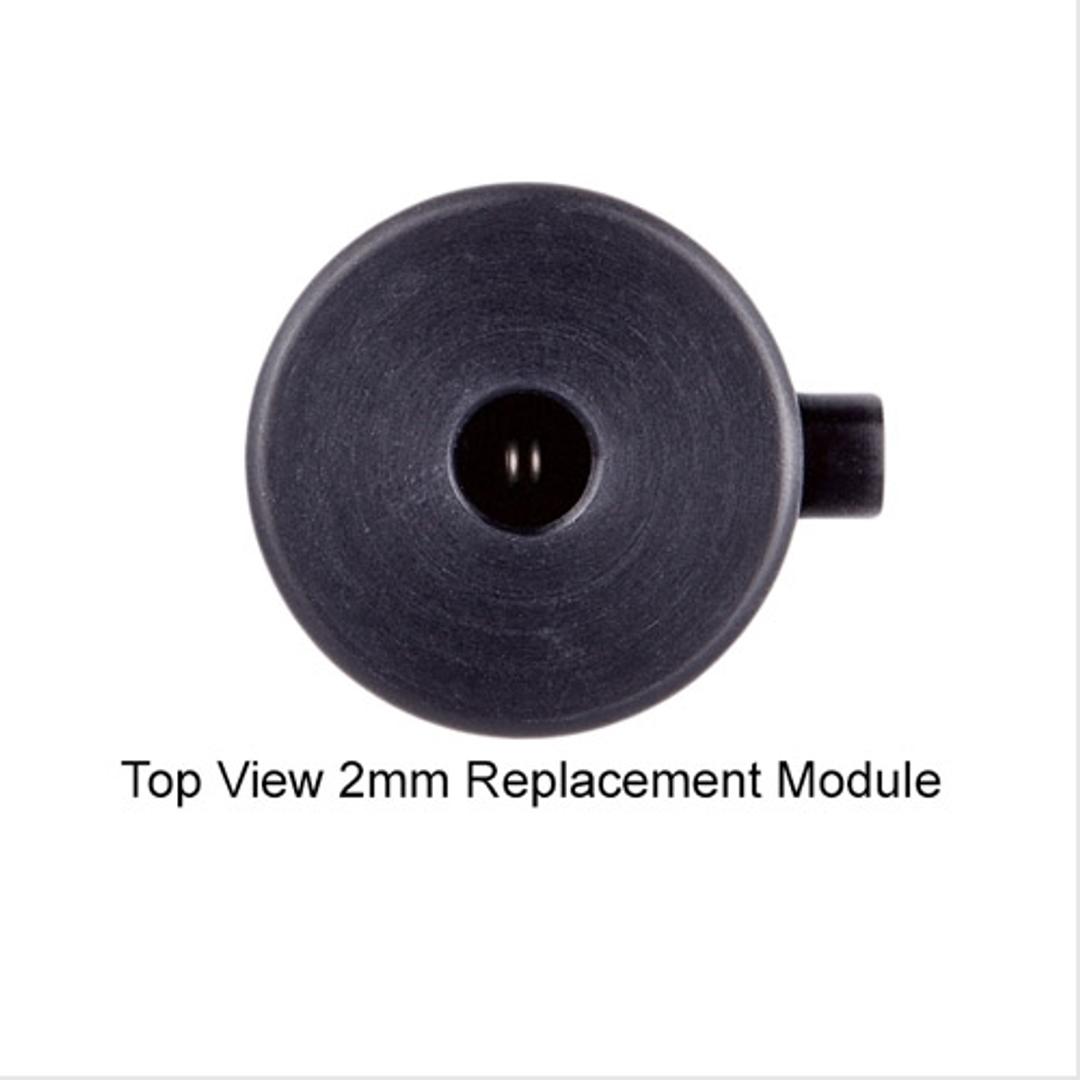 This unit is supplied with a 2mm module. Other burn modules: 1mm, 4mm or 7mm, 1mm are sold separately. 1mm modules have one coil loop, 2mm has 2 loops, 4mm has 4 loops and 7 has 6 loops. See pictures on the right. Internal circuitry prevents prolonged burning which can result in window "blurring" and aberration of the UV beam.