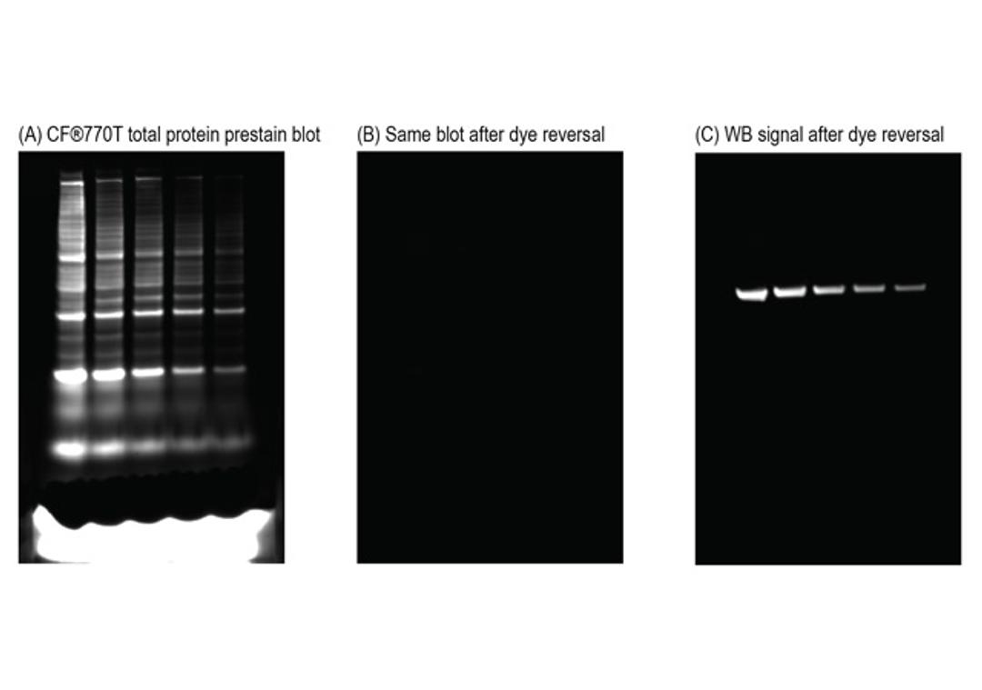 Kits for reversible protein visualization and quantitation on protein gels and western blot membranes by labeling with near-infrared CF® dyes.