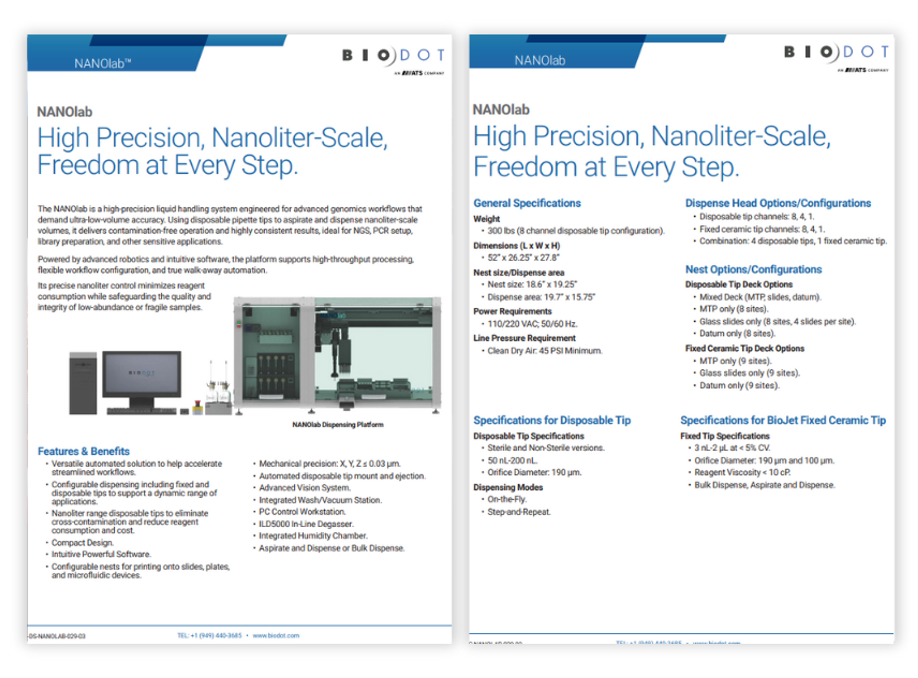 High precision, nanoliter-scale, freedom at every step