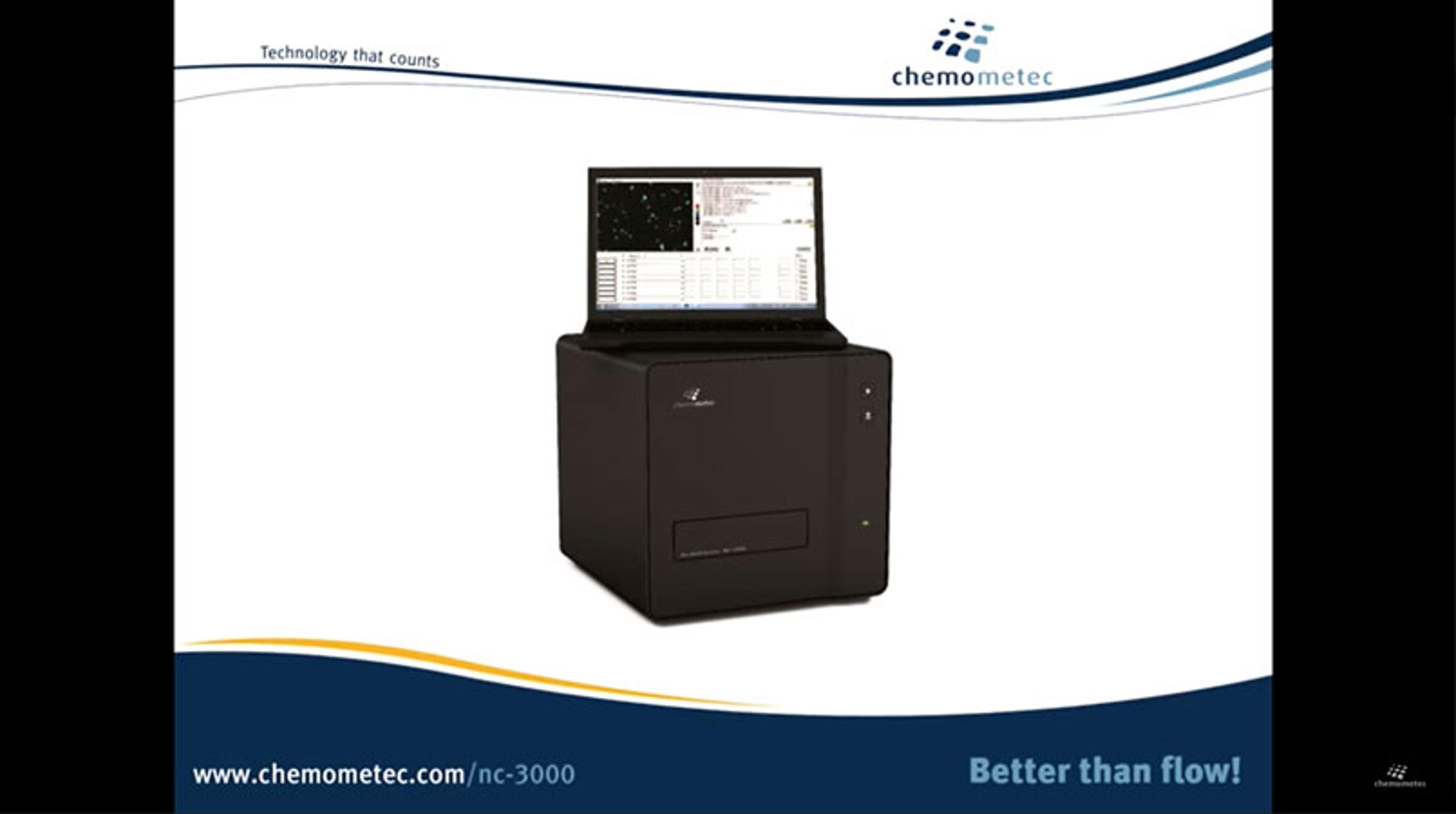 The NucleoCounter® NC-202™ automated cell counter is ChemoMetec's 3rd generation cassette-based instrument. Featuring improved hardware and the new user-friendly NC-View™ software, it takes precision, speed, and data management of cell counting to new levels.