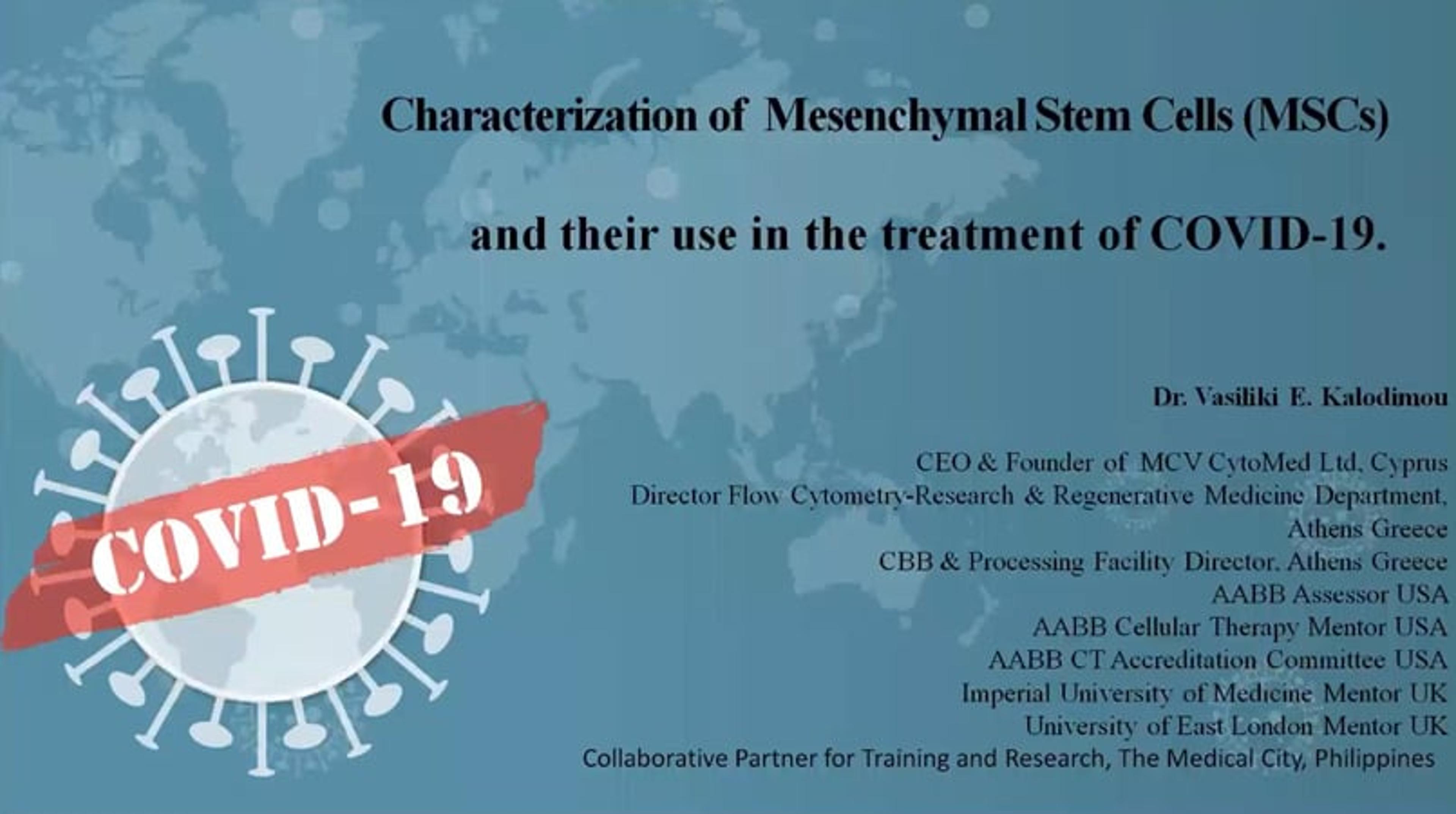 Characterization of mesenchymal stem cells (MSCs) and their use in the treatment of COVID-19